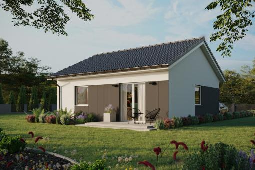 Dom ERDOL 1 o powierzchni 59 m² (lub 90 m² w wersji z użytkowym poddaszem) to komfortowa przestrzeń, w której wszystko jest w zasięgu ręki. Jego kompaktowe rozmiary sprawiają, że jest ekonomiczny w utrzymaniu, a zastosowanie nowoczesnych i ekologicznych technologii zapewnia harmonijne współistnienie z naturą.
