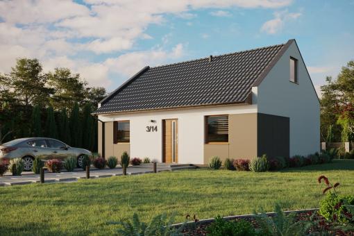Dom ERDOL 2 o powierzchni 68 m² (lub 107 m² w wersji z użytkowym poddaszem) został zaprojektowany tak, aby zapewnić maksymalny komfort i funkcjonalność na niewielkiej przestrzeni.